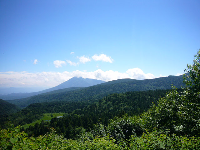 途中の広い駐車場で休憩。岩手山に掛かっていた雲も少なくなってきた。谷の向こうのアスピーテラインもよく見える。