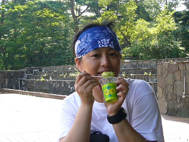 とりあえずお約束の「ずんだ餅」。朝飯直後だったので、カップ入りの小さなやつで。