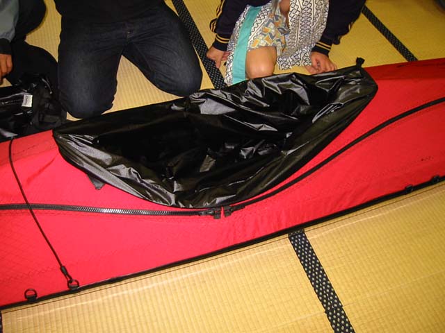 ジッパーはバウ/スターン両側からコクピット横まで伸びて納まる。
