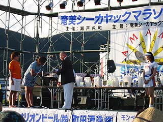 | 太鼓のリズムでセレモニー開幕 | 表彰式です。我々は飛び賞も当たらなかったっす |