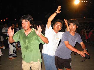 | だんだん暗くなって盛り上がってきます | 皆、踊り始めました! |
