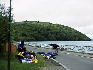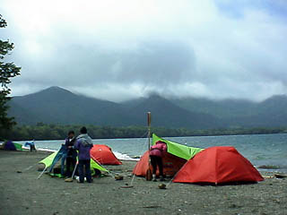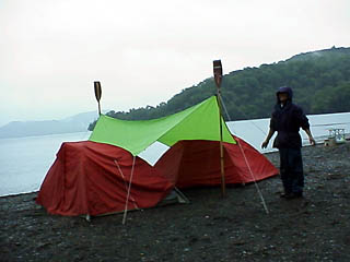 一日停滞するか悩んだすえ、出発することに 強風の中撤収をする |